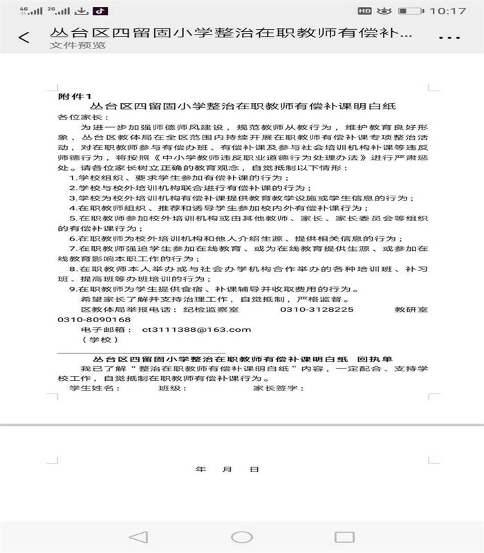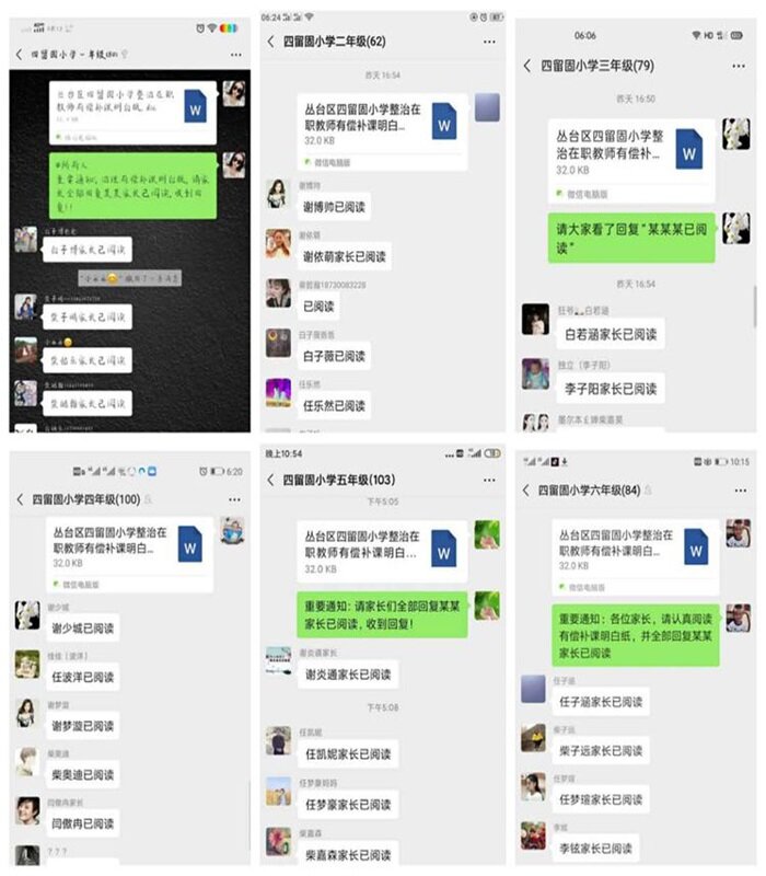会后,各班利用钉钉群、微信群等多途径、多渠道向家长、学生、社会做宣传,并认真做好《新时代中小学教师职业行为十项准则》的学习贯彻。由于疫情问题,通过微信群将“明白纸”发送给家长,使学生家长了解我校教师拒绝有偿补课的决心!