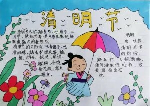 活动三:为了营造浓厚的清明节气氛,增强学生动手、动脑能力,特举行清明节手抄报评比活动。看,孩子们用心制作的手抄报多漂亮啊