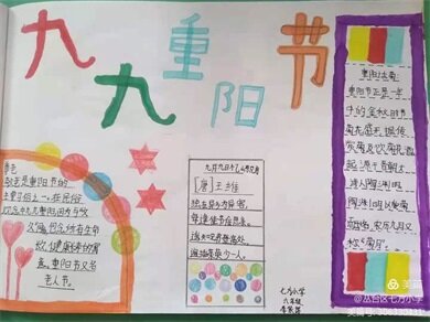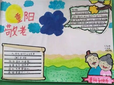 小小的作品送去对长辈们祝福!六年级同学用手抄报的形式表达了对节日的祝福。