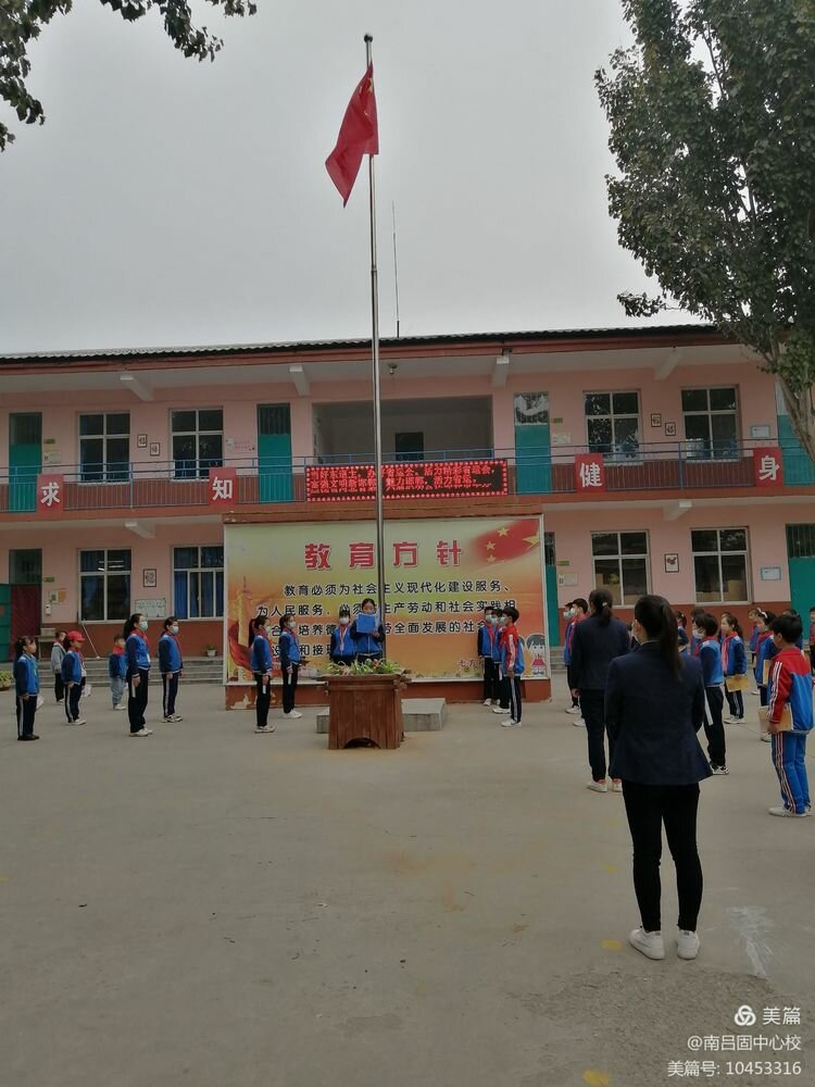 11月1日早晨,7点50分,全体师生已在校园里站好队列,等待五星红旗冉冉升起。