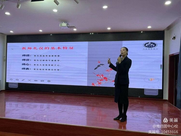 李慧老师从教师礼仪解析、教师形象礼仪、教师工作礼仪和教师沟通礼仪这四个方面给大家讲解和示范。